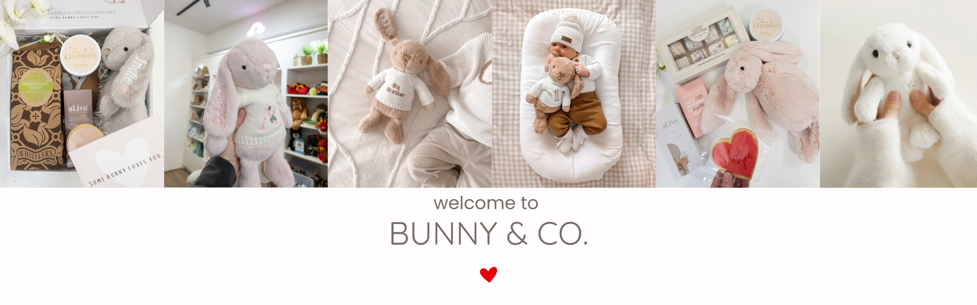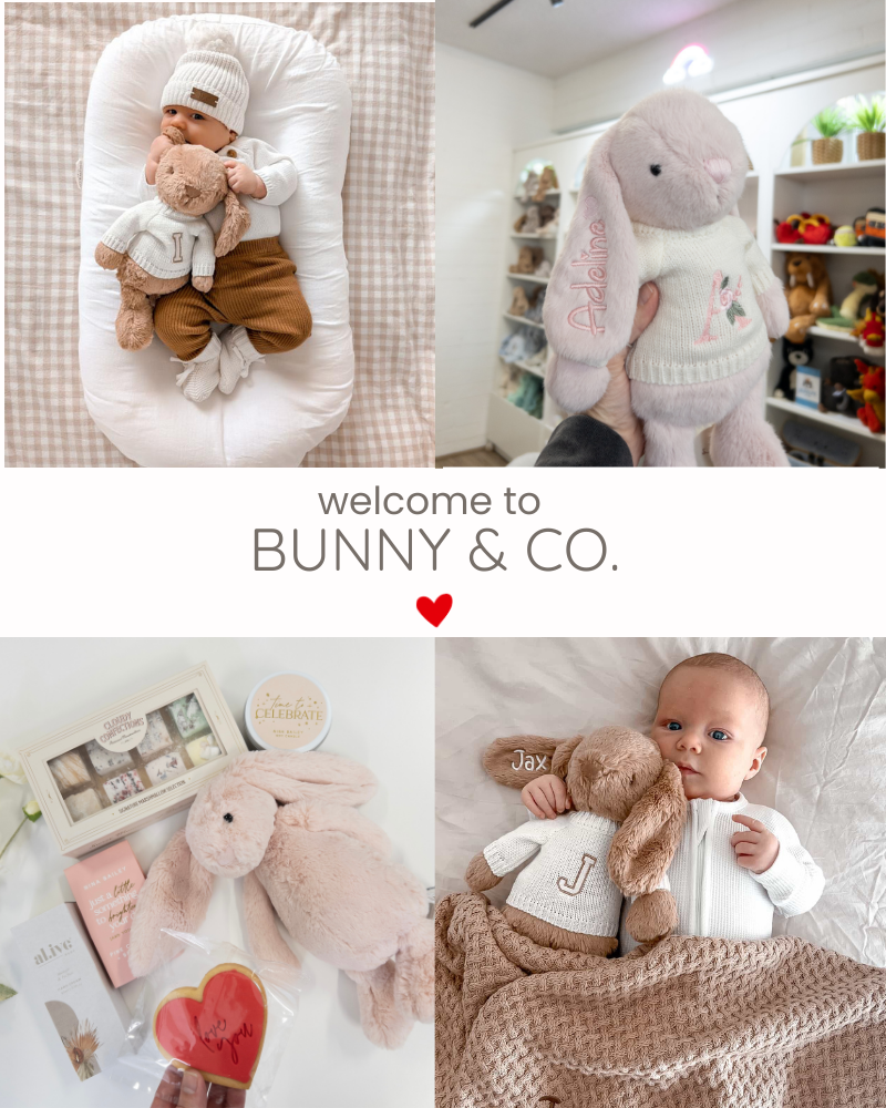 Featuring personalised bunnies, blankets & newborn baby gift hampers