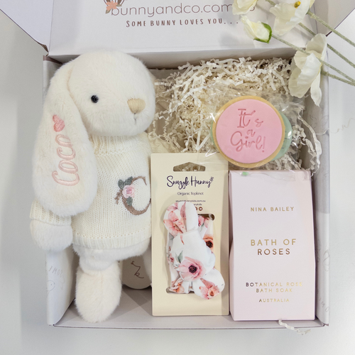 Personalised Baby Girl Snuggle & Treat Box - Blossom Snuggle Bunnies